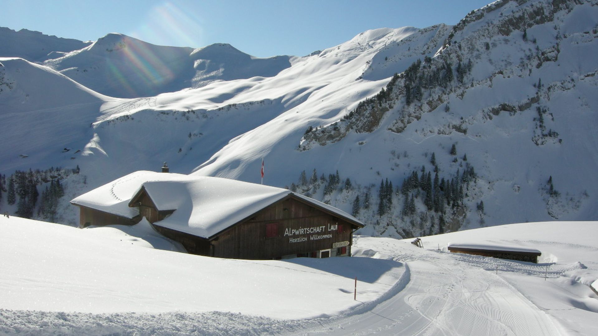 Die geführte Schneeshuhtour zur Alp Laui ist ein perfektes Gruppenerlebnis und die Wanderung dauert ca. 90min.