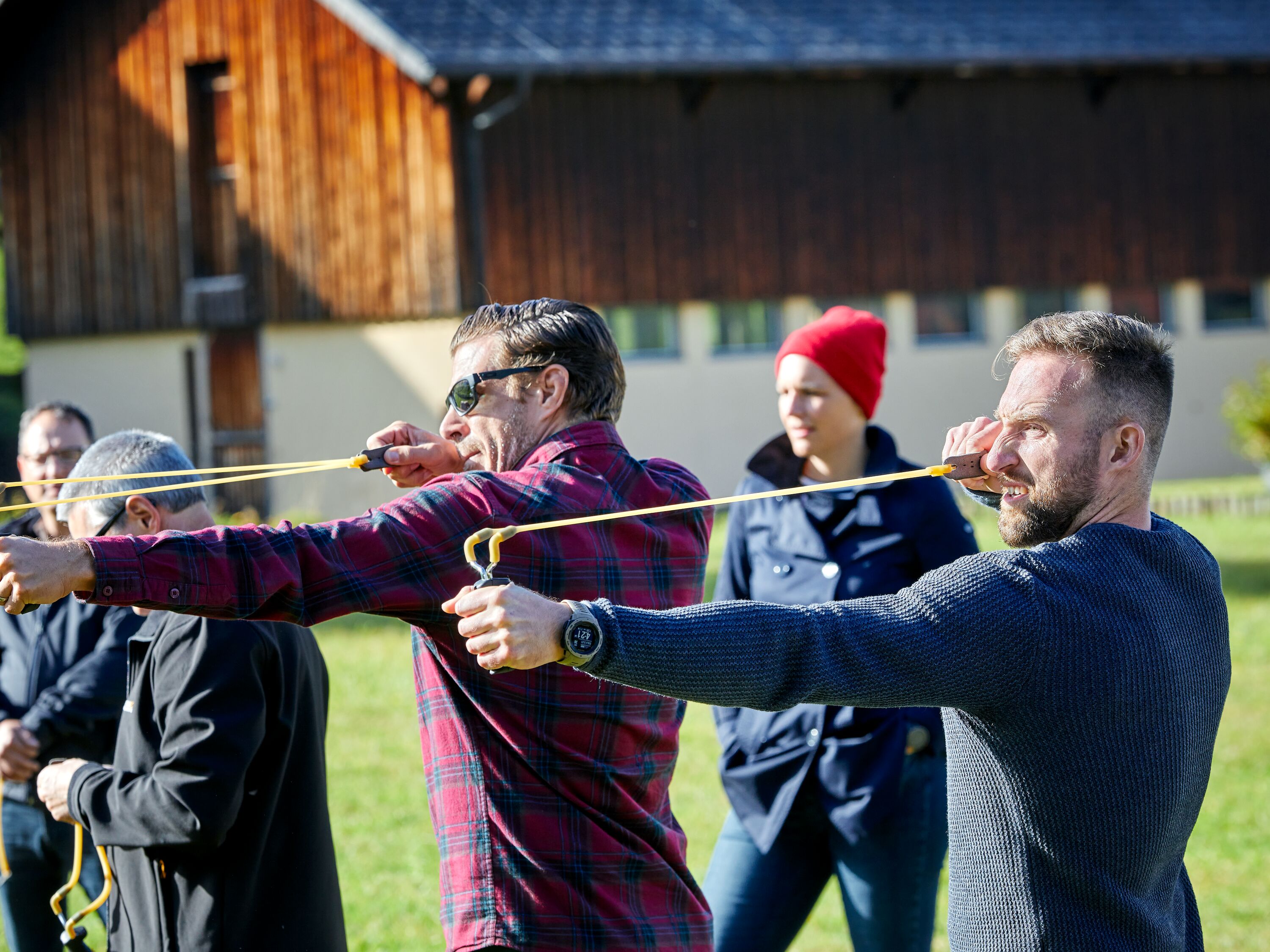 Diese Team-Spiele bieten Abwechslung und Spass in der Gruppe. Die Teams werden mit vier bis sechs lustigen und spannenden Ur-Schwyzer-Teamspielen auf die Probe gestellt und messen sich beim Kuh-Melken, Armbrustschiessen, Kirschstein-Spucken usw. Es zählen Einsatz, Team-Geist und Kreativität.