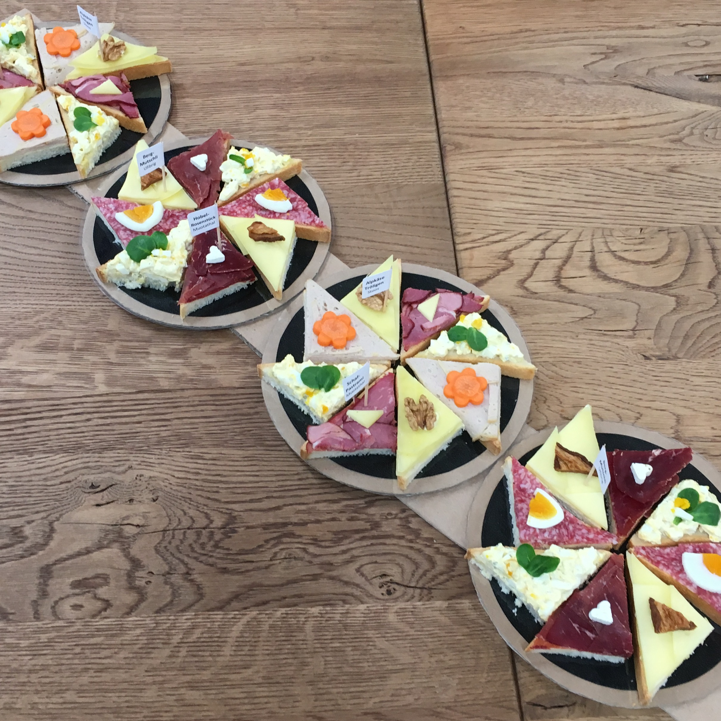 Aperitif platter «Firrenstöckli» Sandwiches: Alpine cheese, mountain cheese, dried meat, sheep's pastrami, meat loaf, salami, egg
