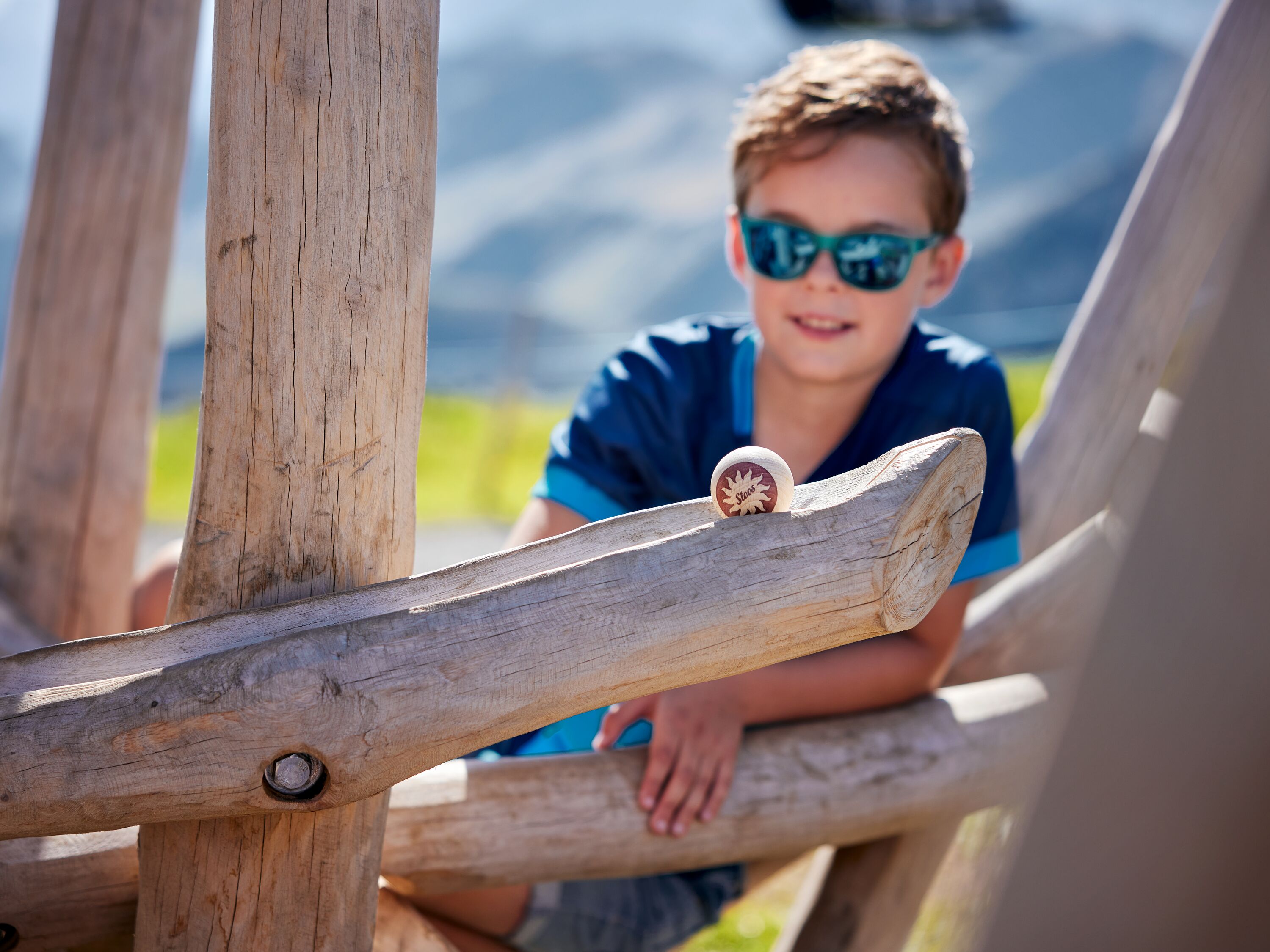 A wooden ball is the playful companion: from the balancing game on the sunny island to the ball tracks and scenic resting places in nature. Original elements, for example a telescope, milk churns and the bell puzzle, are located on the adventure trail. In addition, special features such as the prayer call and medicinal plants are presented.