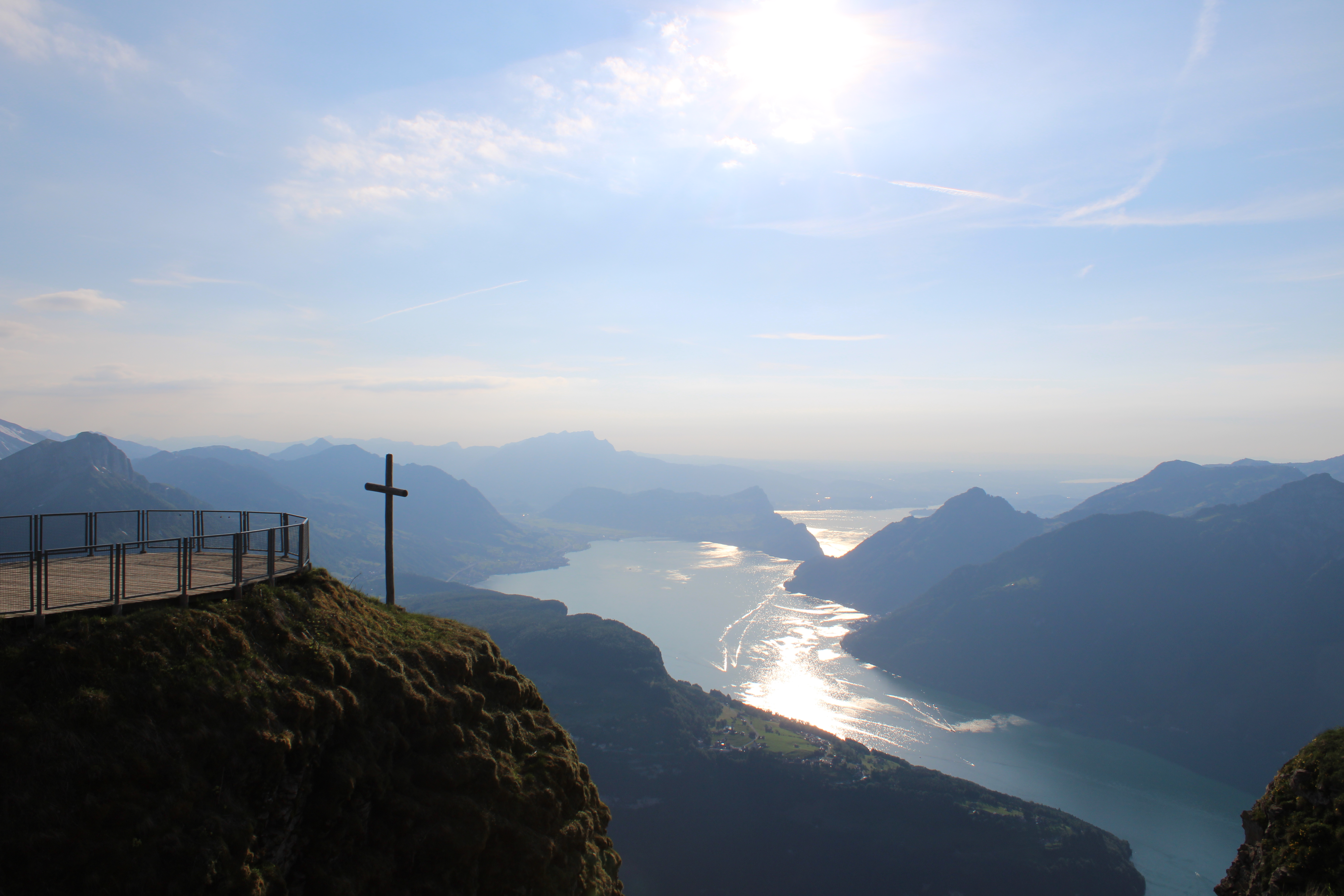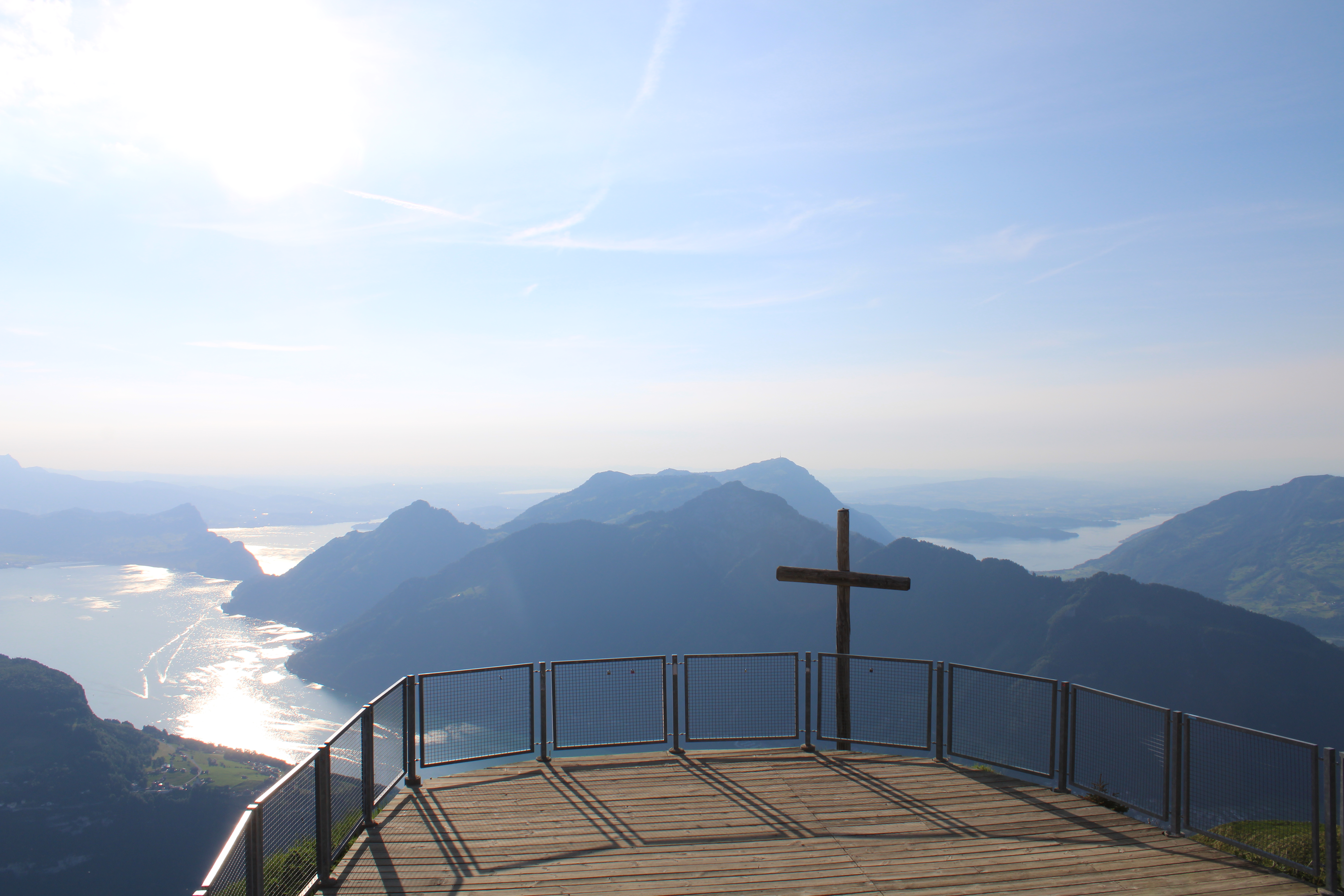The viewing platform on the Fronalpstock offers a fantastic view over countless peaks in the foothills of the Alps and over ten lakes.