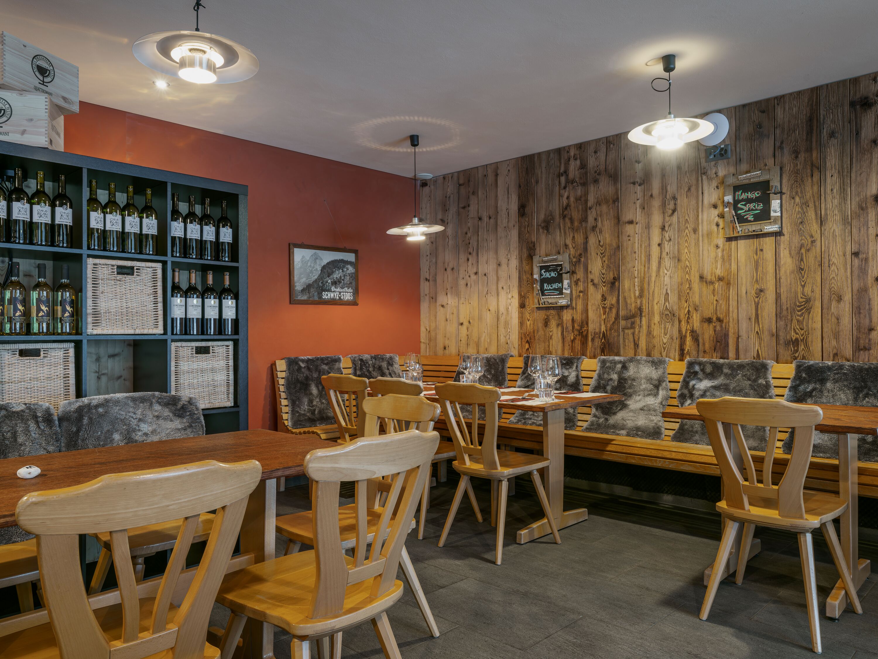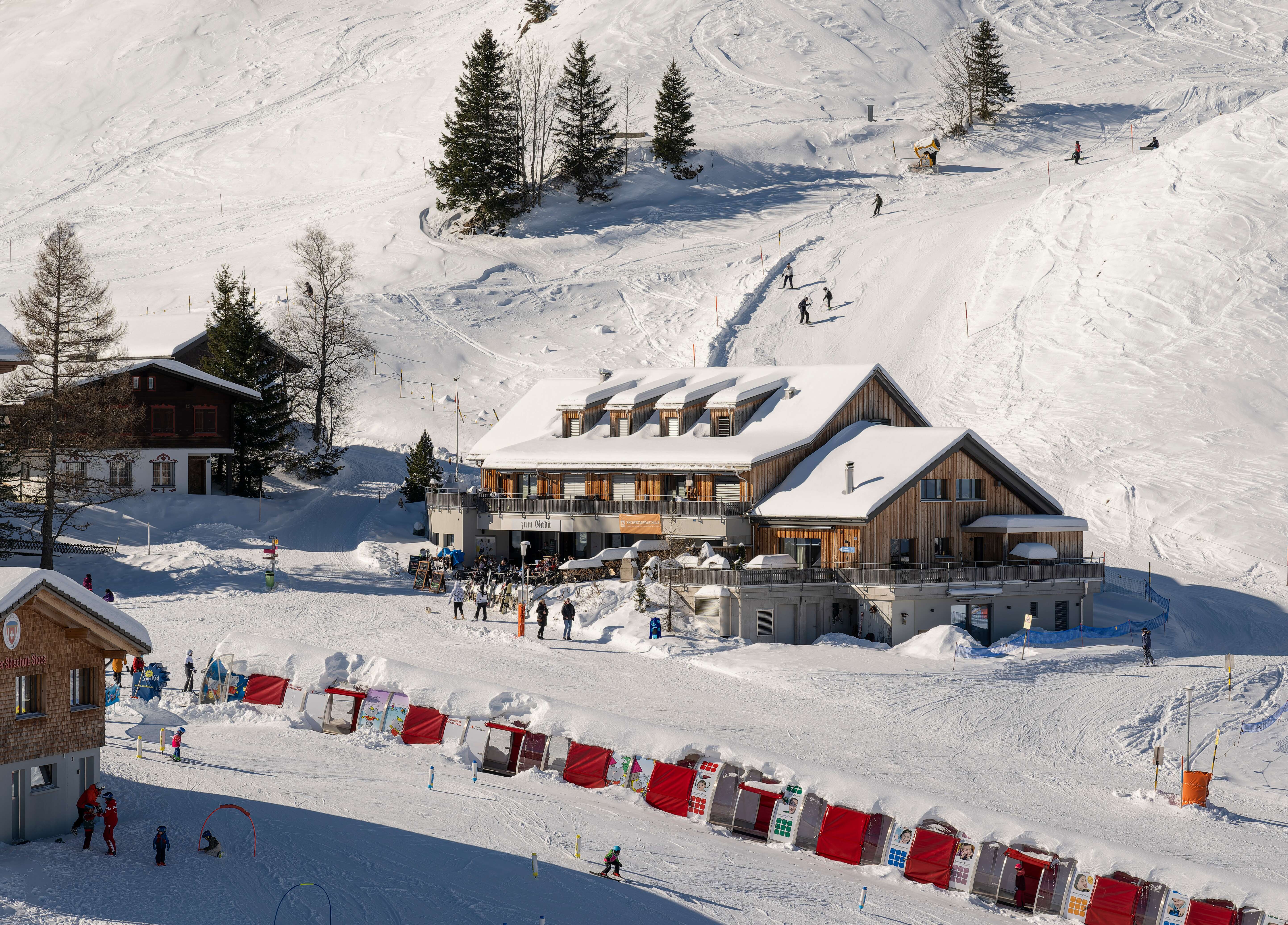 From the terrace you can watch the little ones in Fröneli's Winterland, soak up the warm rays of sunshine and enjoy the view of the Mythen.