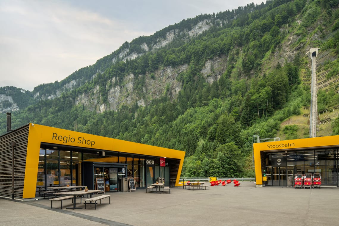 The adventure really begins with the world record ride. The steepest funicular in the world takes you from Schwyz up to the idyllic mountain village of Stoos in just a few minutes.