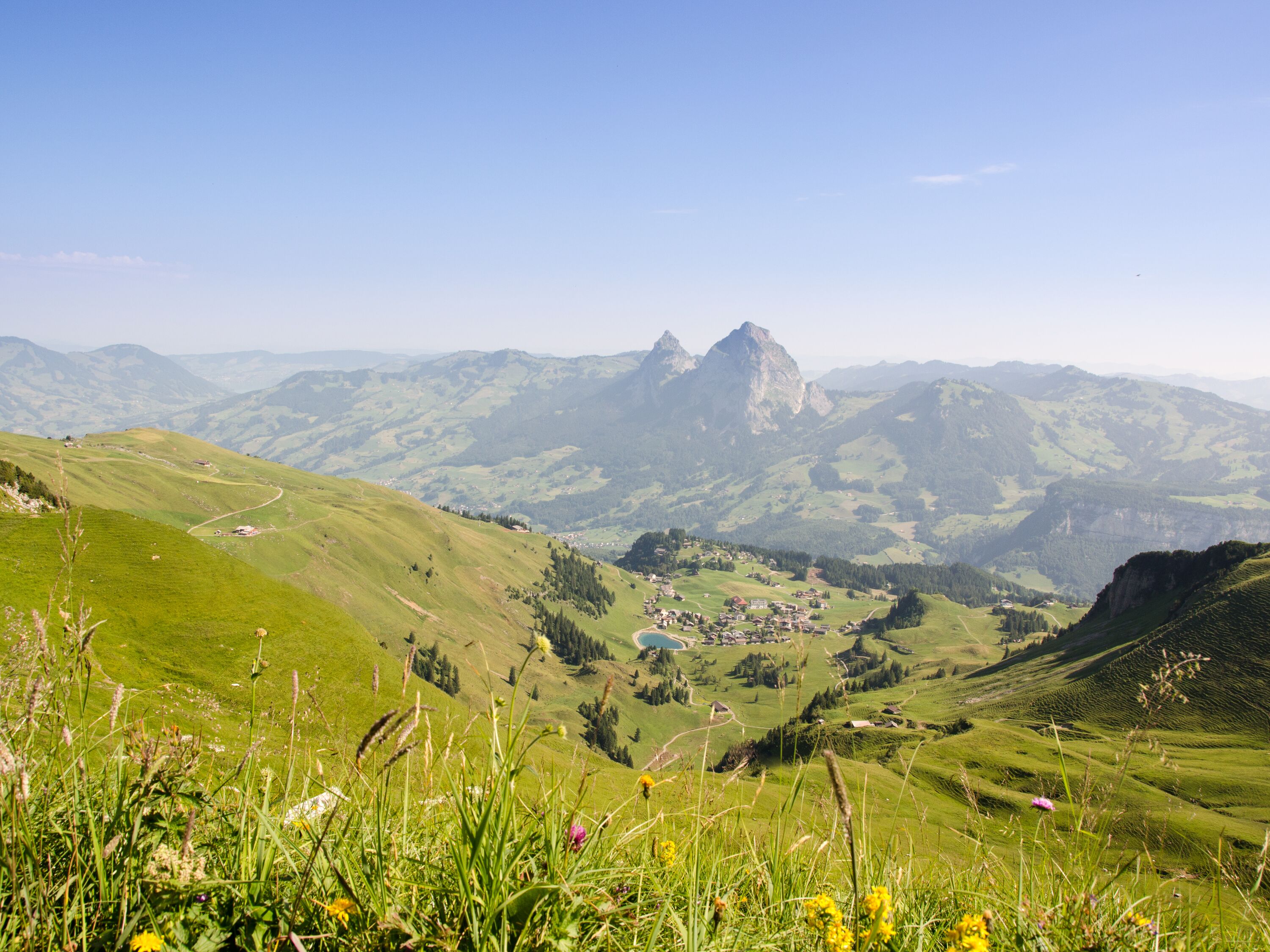 After a short walk through the mountain village, you can take the two chairlifts from Stoos up to the Fronalpstock summit in around 20 minutes.