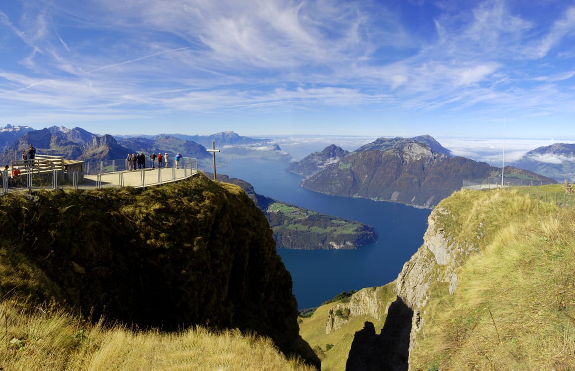 Strengthened, you can experience the impressive and beautiful 360° panorama over ten lakes and numerous Alpine peaks or the vast sea of fog on the viewing platform. On the Fronalpstock summit, you can also take the panoramic trail for a half-hour walk to really enjoy the view.