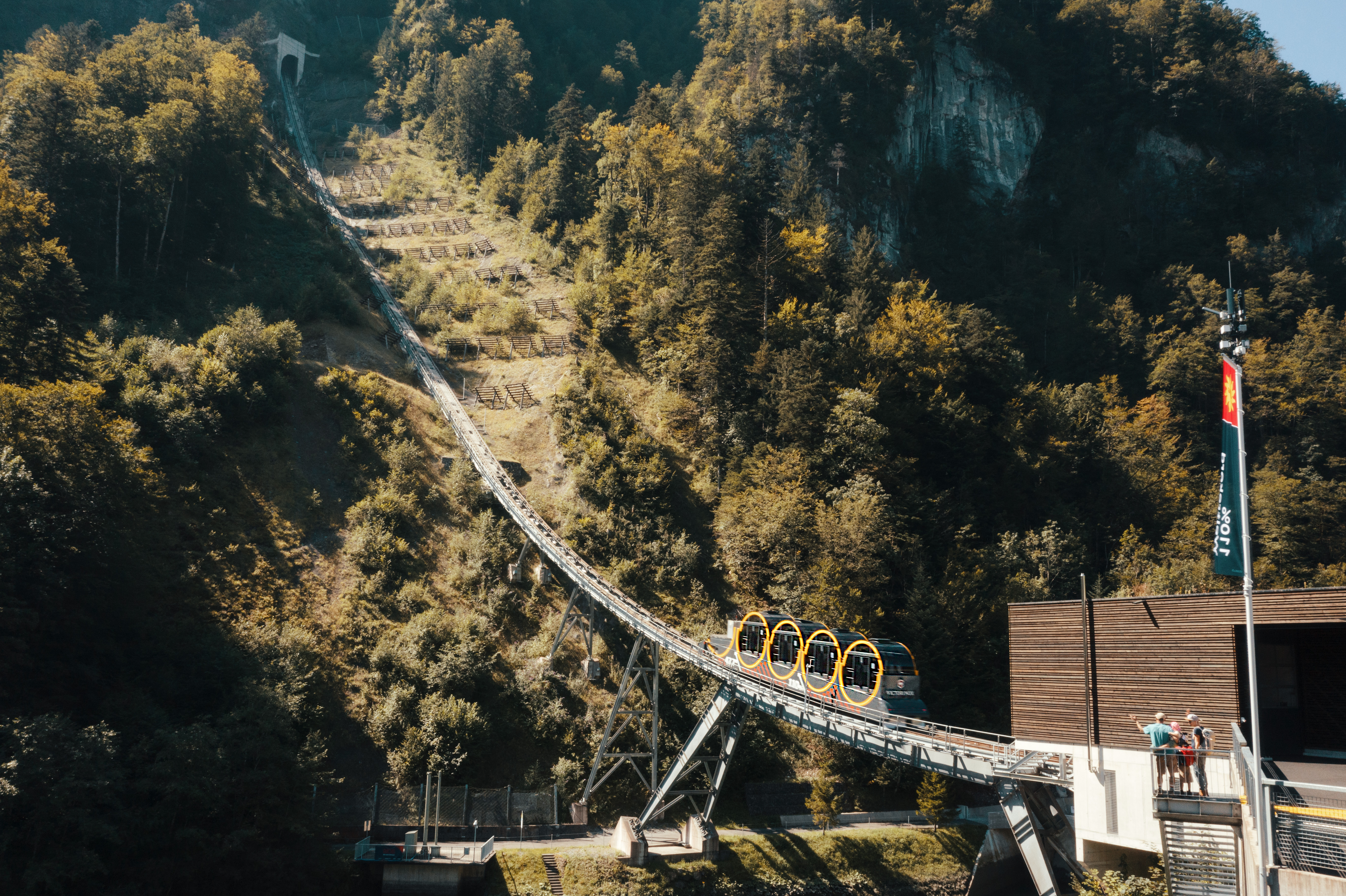 The adventure continues with the world record ride. The steepest funicular in the world takes you from Schwyz up to the idyllic mountain village of Stoos in just a few minutes.