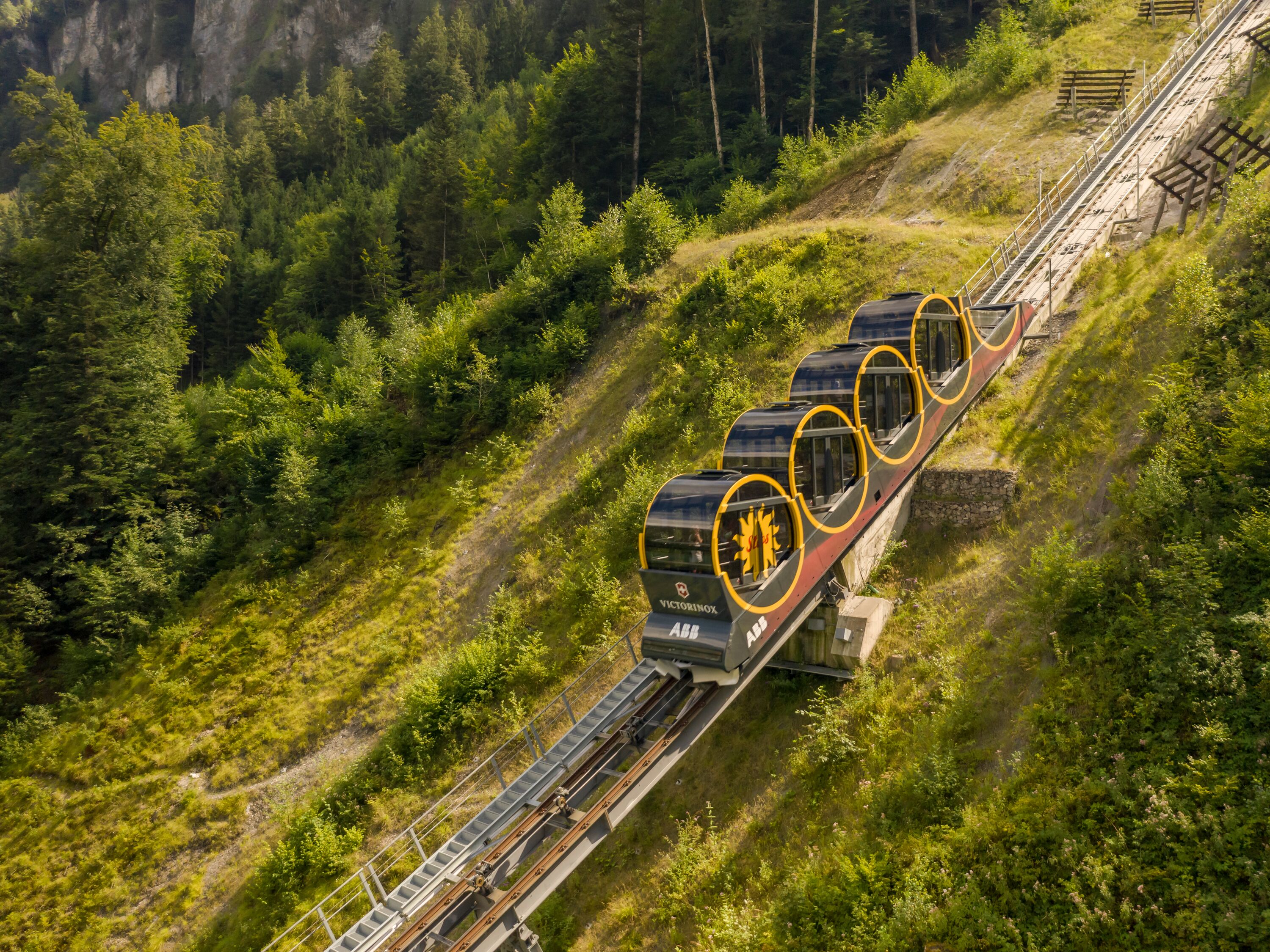 Upon arrival, we welcome your group in the Regio-Shop at the valley station with a cozy round of coffee and croissants, as an ideal introduction to the Stoos excursion. The ride on the steepest funicular in the world with a gradient of up to 110% is also part of this excursion. You will marvel at modern and contemporary Swiss engineering and construction. On the approximately one-hour guided tour through the mountain village of Stoos and the surrounding area, you will learn many interesting facts from our guest guides about history, settlement, mountain tourism and a unique mountain school.