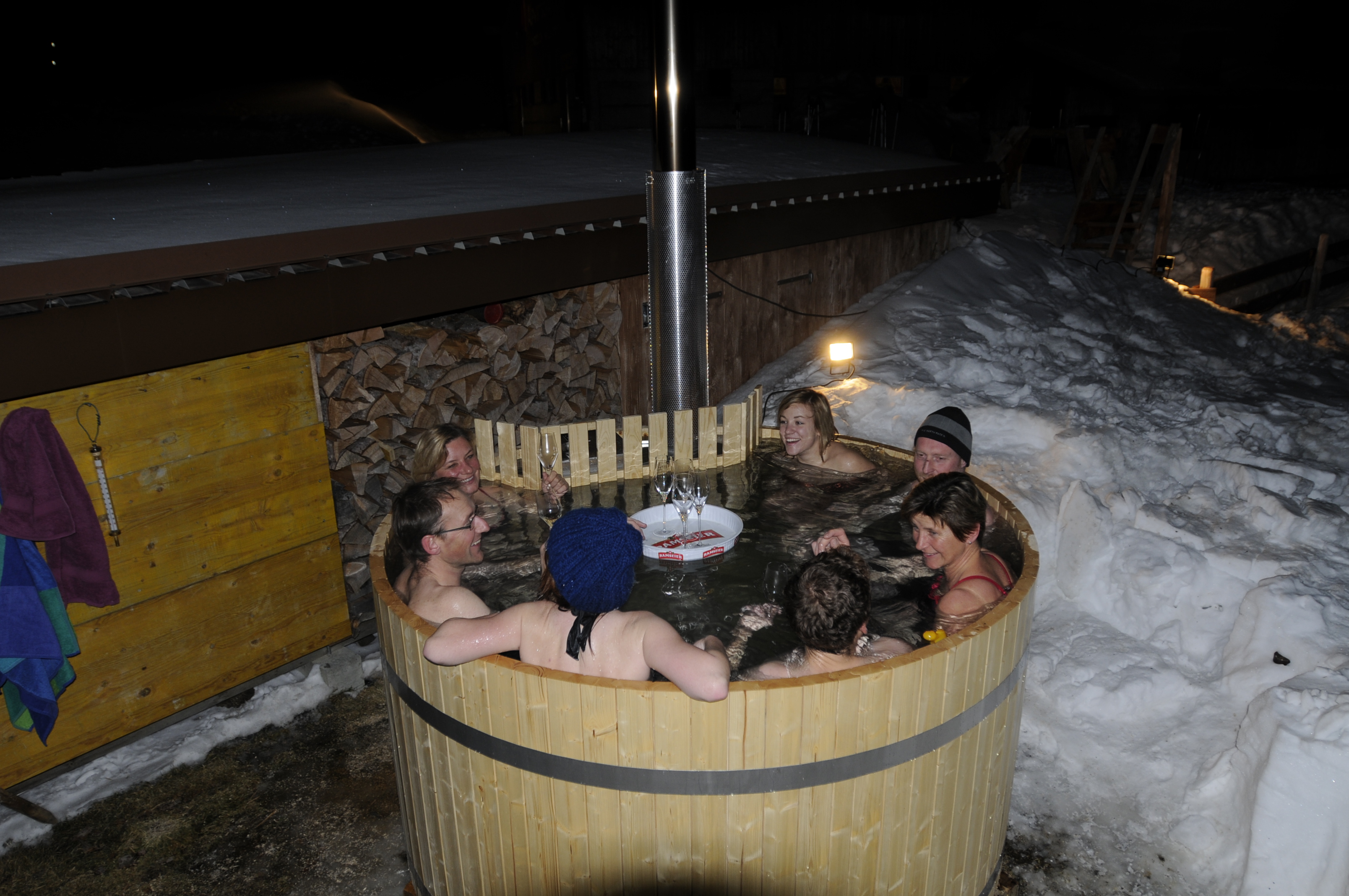 In winter, after a snowshoe tour to the alp, you can treat yourself to a fondue followed by a hotpot.