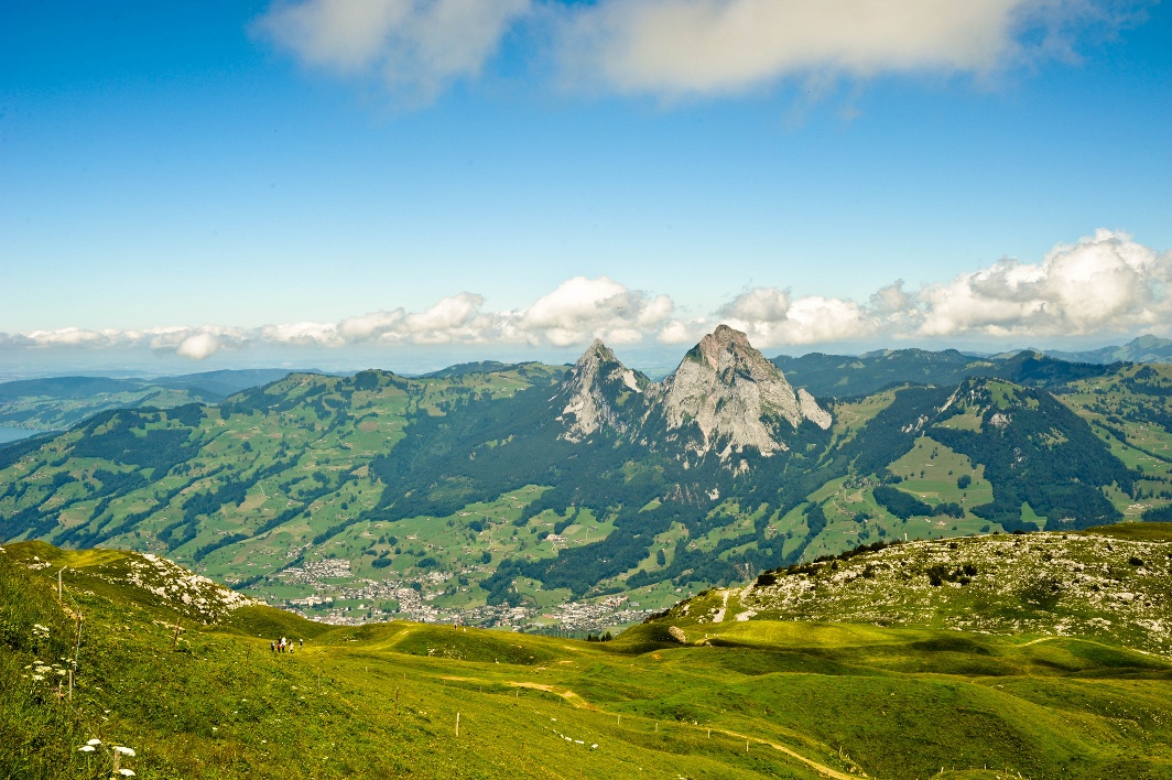 The steepest funicular in the world travels to the car-free holiday village of Stoos at 1300 metres. The chairlift then takes you up to the 1922-metre-high Fronalpstock. Once at the top, the view is overwhelming. Ten lakes and countless peaks of Central Switzerland lie at our feet.