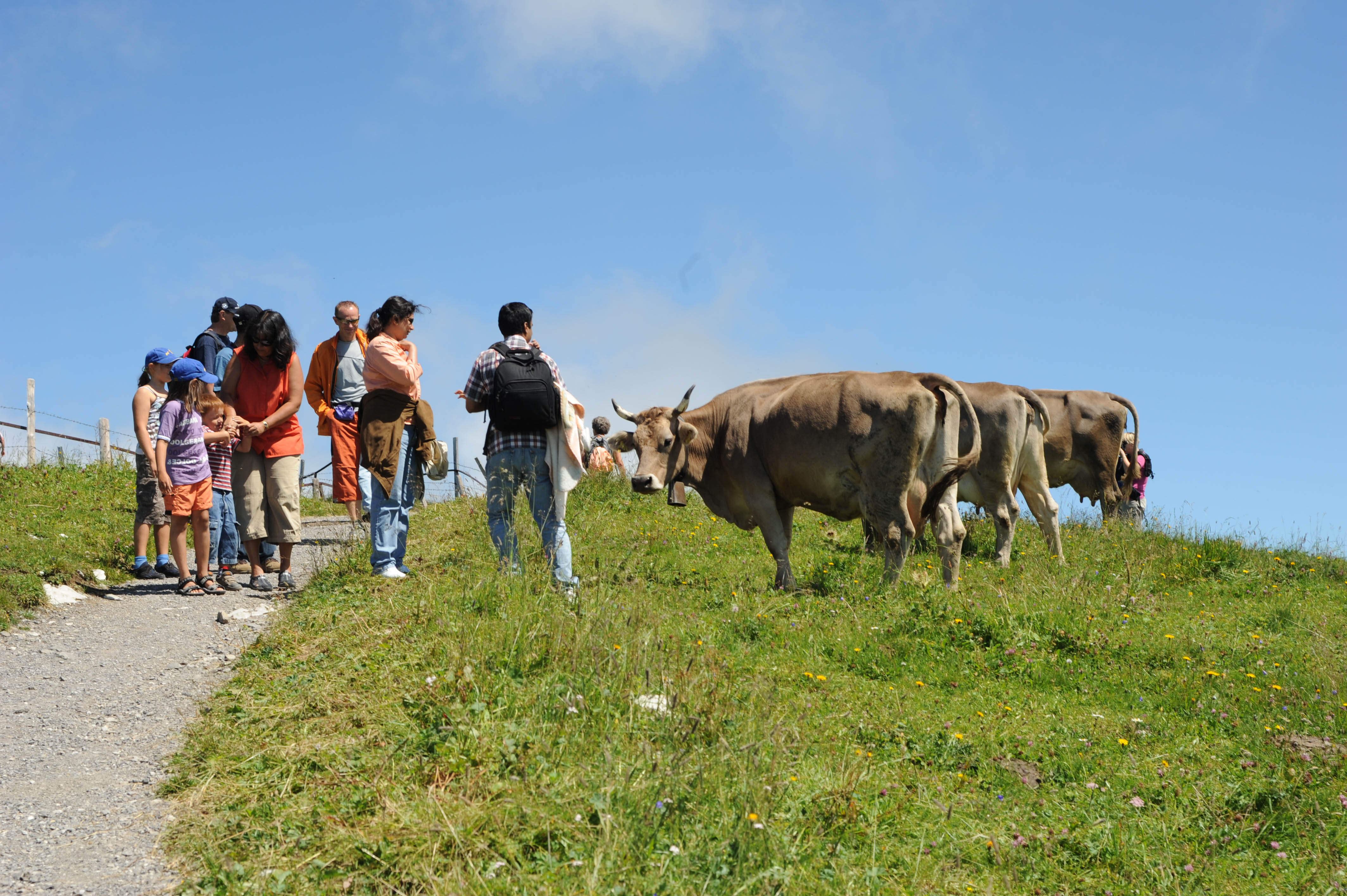 The leisurely walk, which is suitable for all-terrain pushchairs, is relatively flat and leads back to the Fronalpstock Hotel | Restaurant, where free brochures with information about the trails on the Stoos are available at the Stoos cable car stations. The little ones can have fun on the large playground or romp around with the dwarf goats. The picnic possibility at the playground and various resting places on the summit invite you to linger.