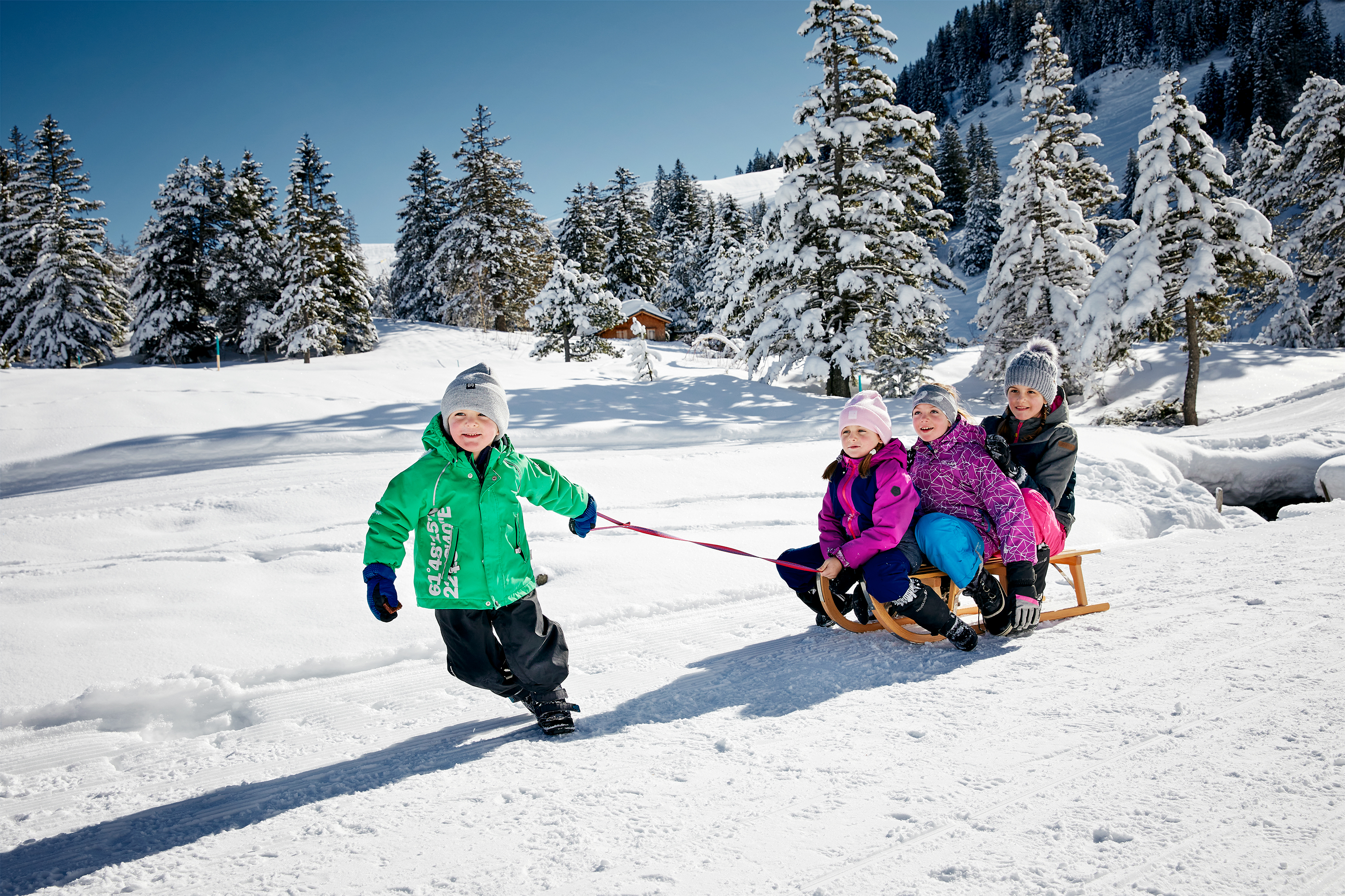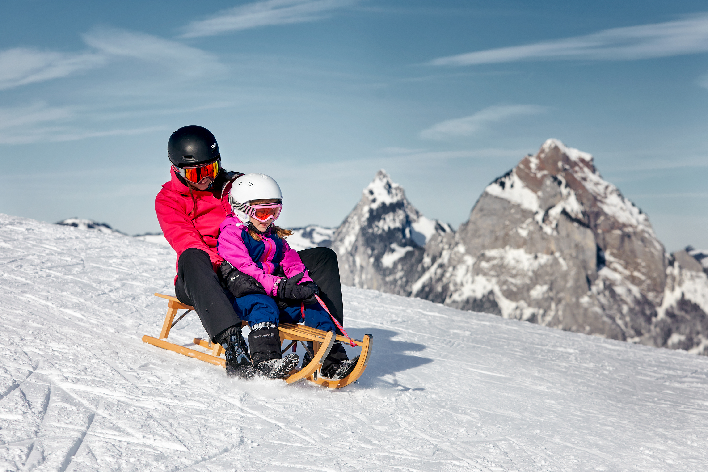 The toboggan run on the Fronalpstock offers great views of the mountain panorama. This is demanding and not suitable for small children without accompaniment. For toddlers, sledding slopes around the village of Stoos are particularly suitable. By slightly adjusting the course layout and equipping rental sleds with brakes at the mid-station of the Fronalpstock chairlifts, the safety of the sledding trail has been optimized for the winter season 2024/25.
