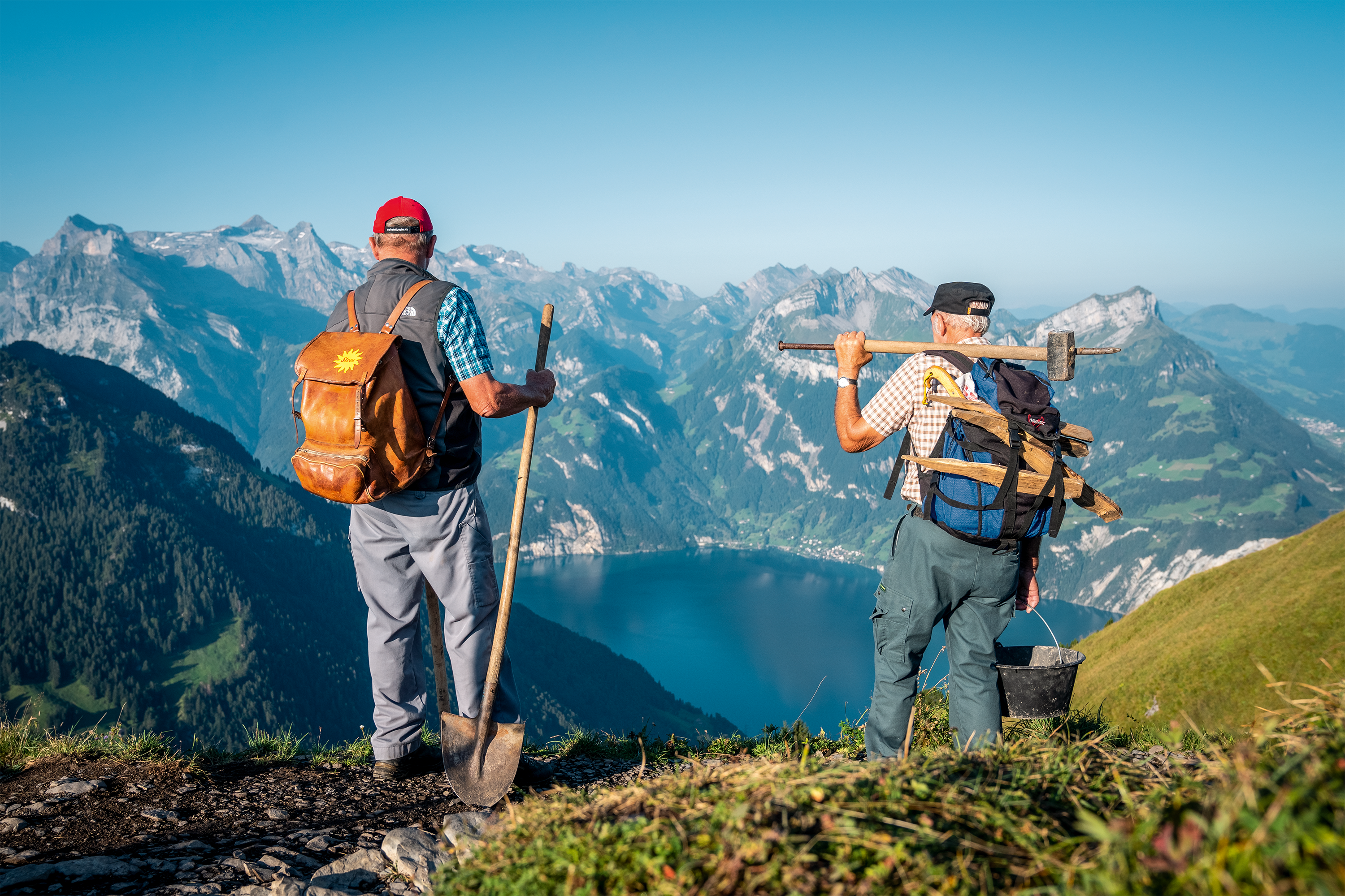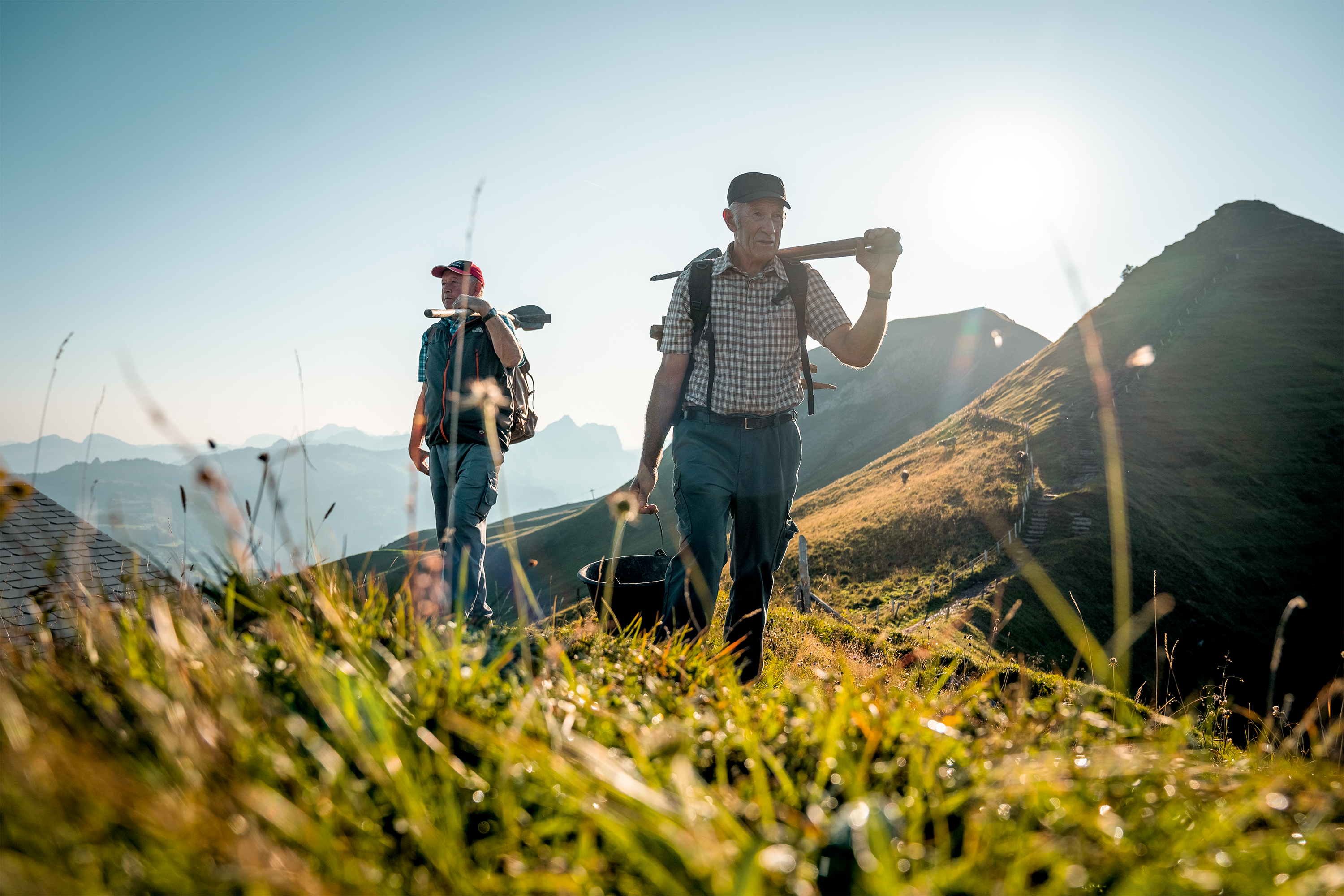 For 15 summer seasons Sepp has been working on the ridge walk, in the beginning there were two of them, now there are seven. The chances to meet Sepp are good: on about 30 days (250h) he and his team are in action. The thanks and appreciation of the hikers are a great joy for the hard-working hitchhikers. Sepp is also happy about being outside in the beautiful weather, about the good progress on projects and also about the fact that there has never been a serious accident during the maintenance work.
