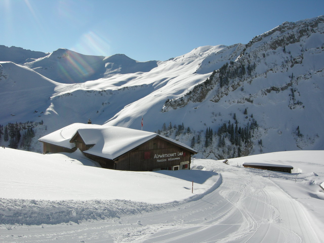 The guided snowshoe tour to the remote alpine hut Laui is a Stoos classic. The tour requires some fitness (90 min. runtime to the hut), but is rewarded with a sesational view and - if desired - with a fine fondue.