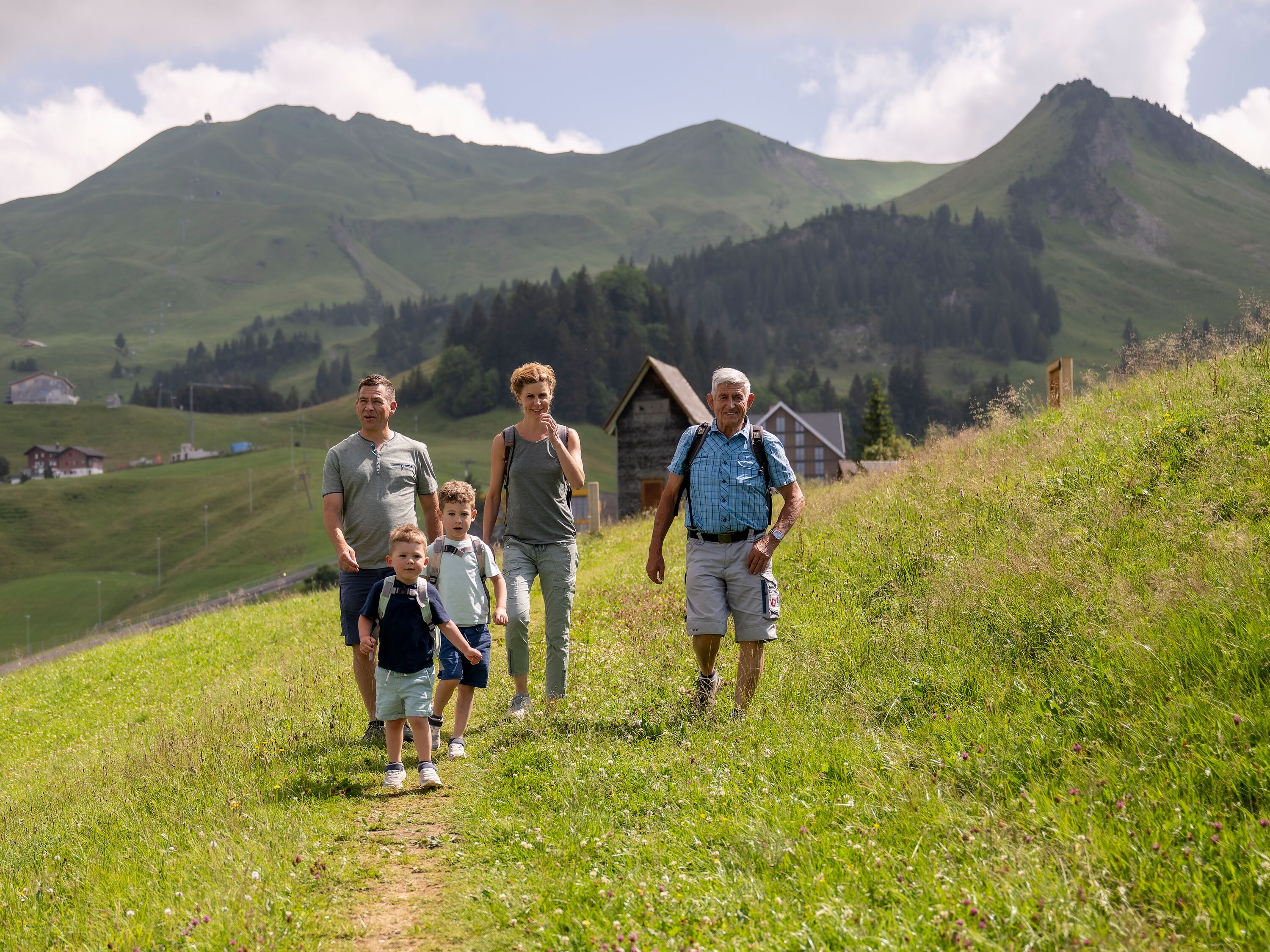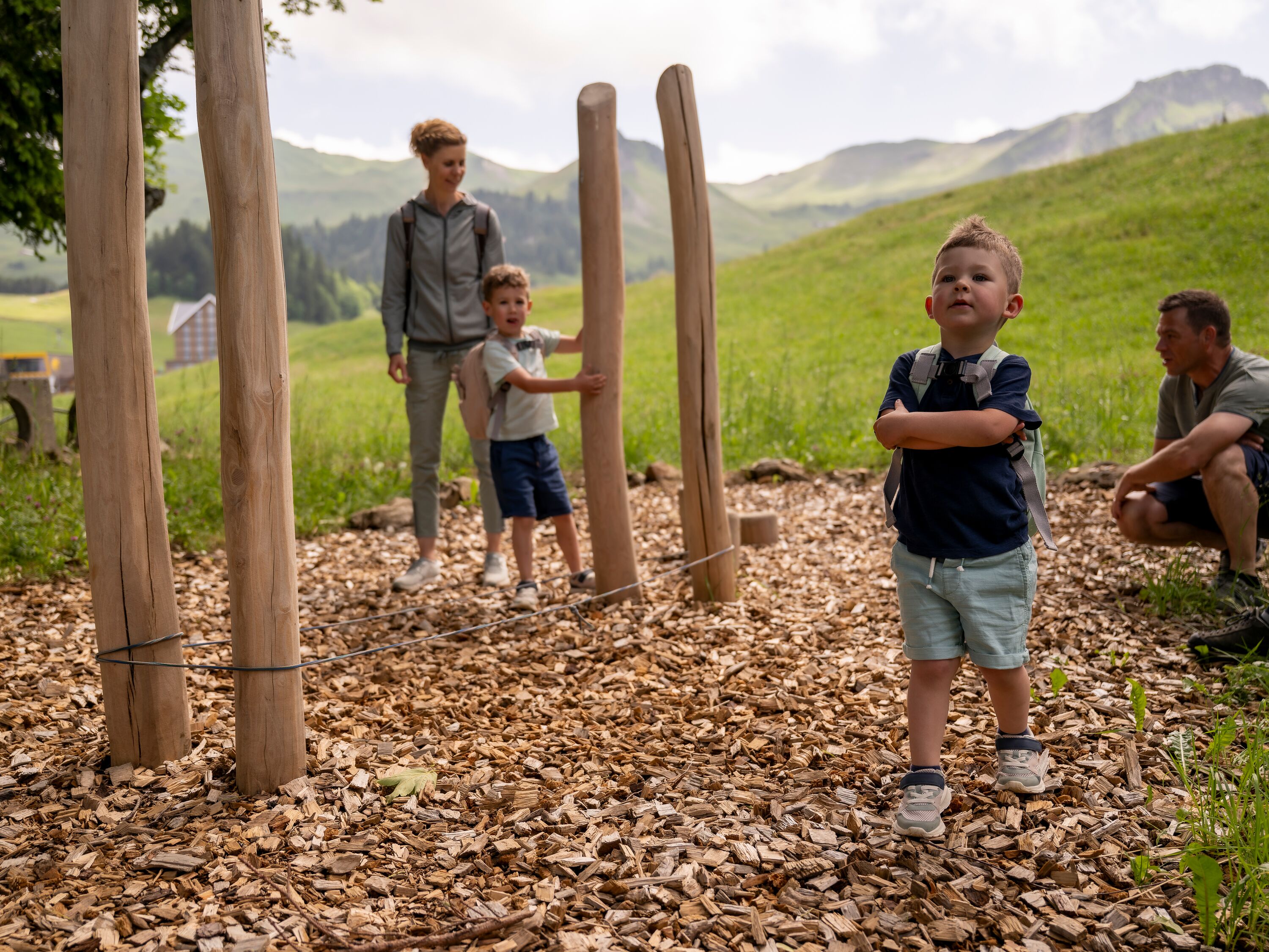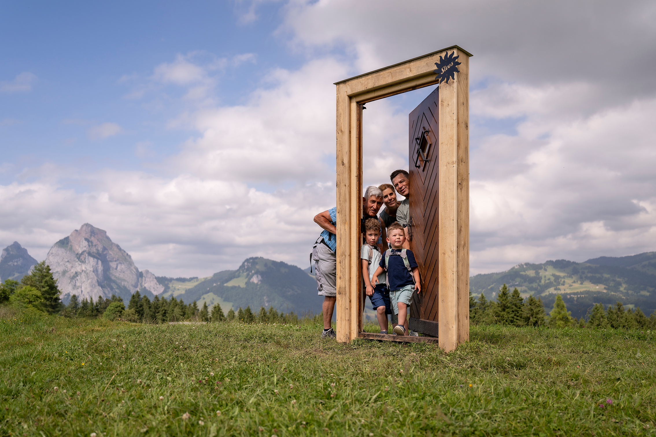 The Stooshorn round offers around 2.8 km of attractions for fun and games at various waypoints. For example, flying through the air on the giant swing makes children's eyes sparkle. In addition to the playful elements, boards with QR codes can also be found along the trail. Various short stories can be listened to via cell phone, in which you can learn more about the past and immerse yourself in the history of Stoos. The unique adventure trail is also accessible with all-terrain strollers. In winter, the Stooshorn circuit can also be experienced for the most part.