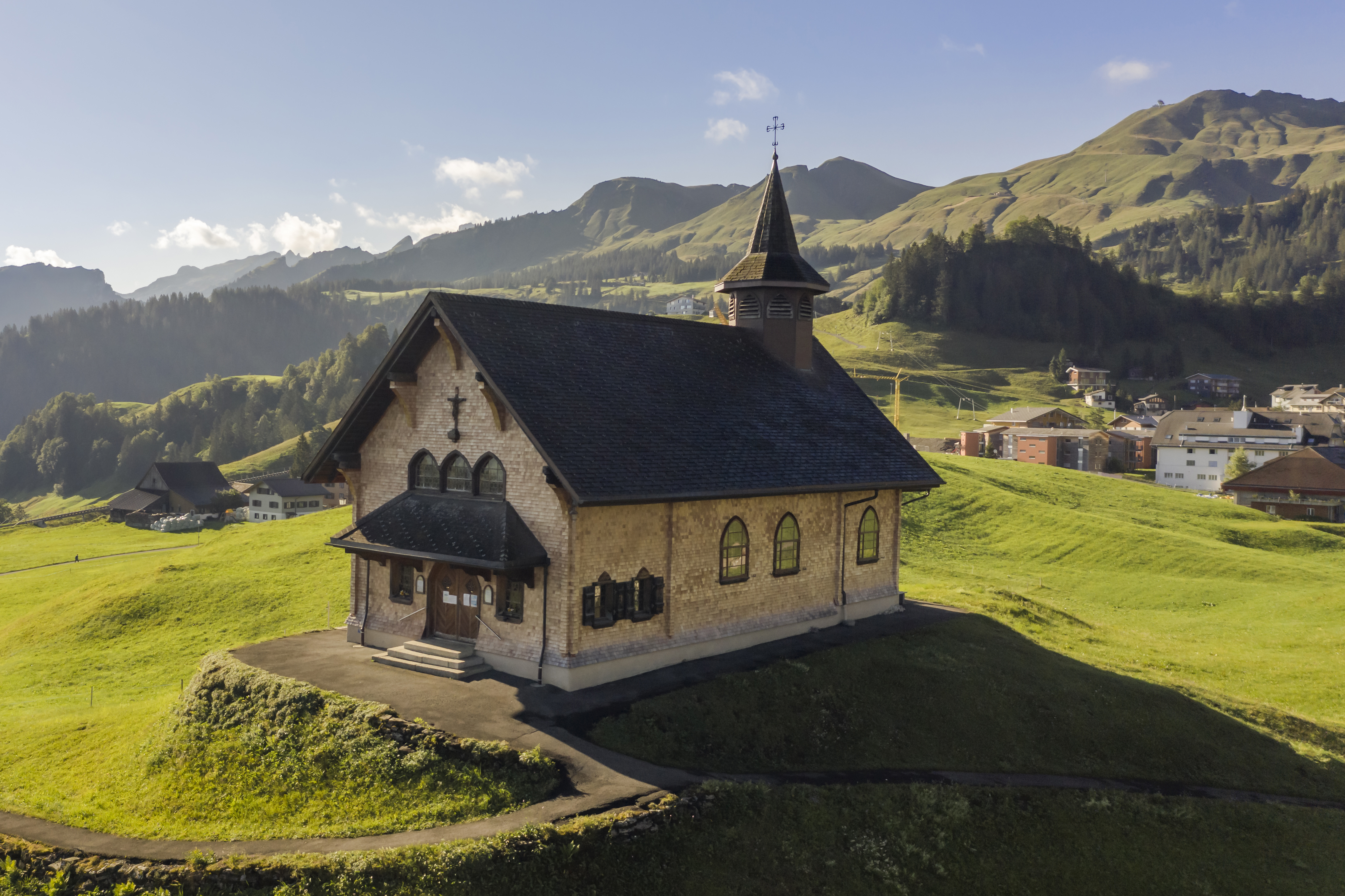 The car-free mountain village of Stoos lies at 1300 m above sea level and is accessible by the world's steepest funicular railroad from Schwyz and a small aerial cableway from Morschach. Various restaurants and hotels are available around the Stoos.