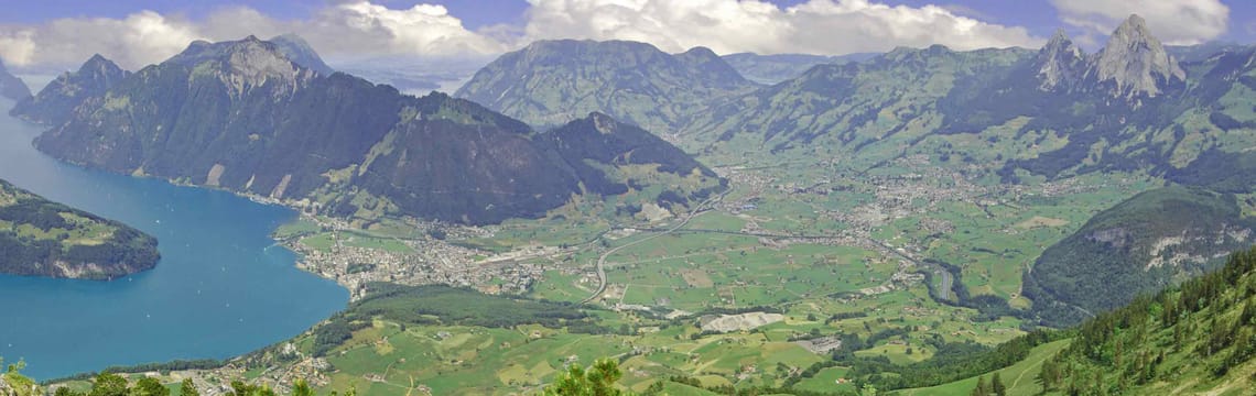 Already from the funicular Schwyz-Stoos or cable car Morschach-Stoos you can enjoy a wonderful view over the valley basin or the Mythen, the landmark of Schwyz.