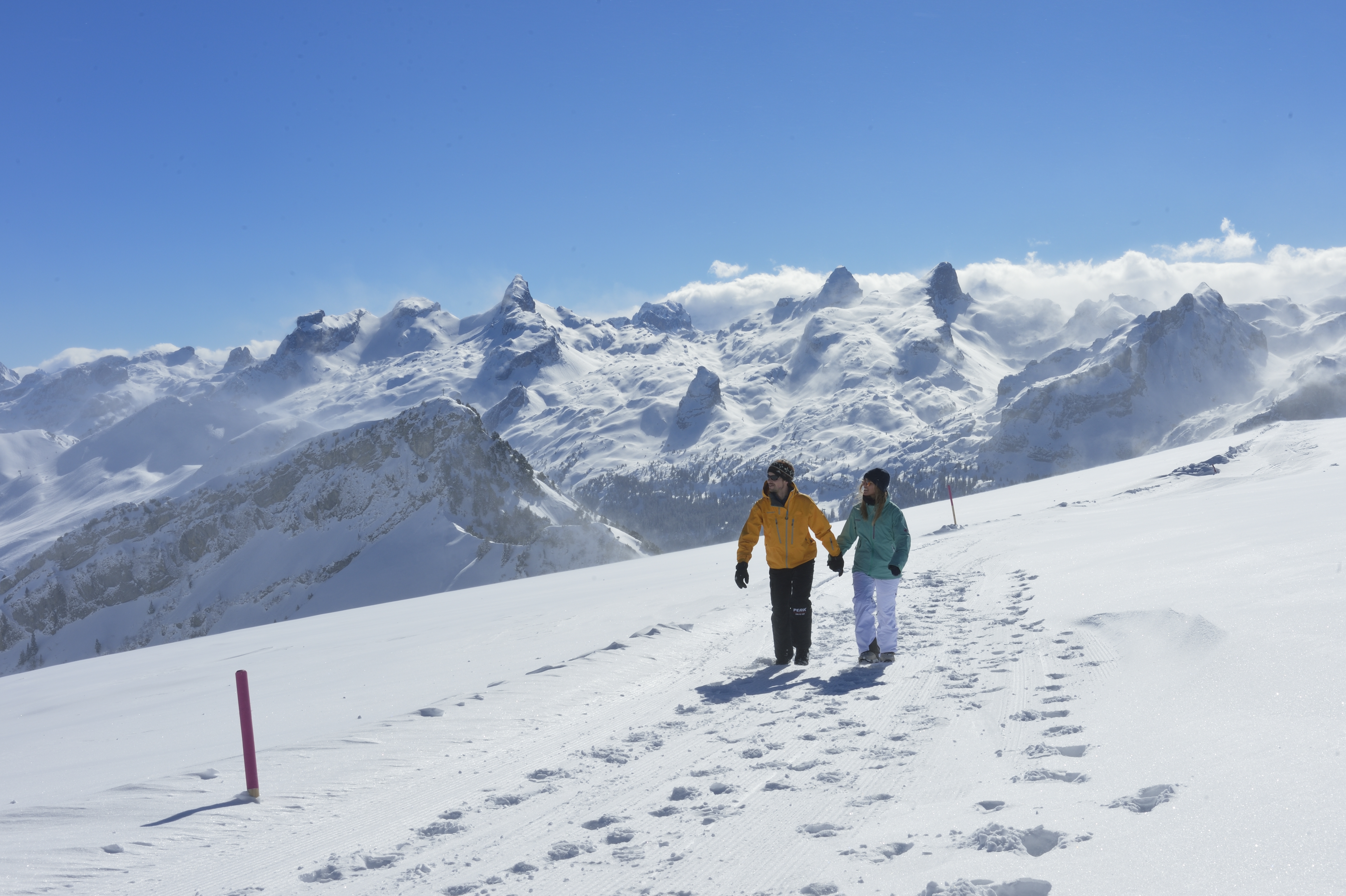 The winter hiking trails on Stoos lead through snow-covered forests, to vantage points and past places of interest. Breathe in, breathe out, revive. Explore the snow-covered mountain landscape and feel the crunch of the snow under your feet - the starting points of the winter hiking trails on Mount Stoos are easy to reach. All winter hiking trails on Stoos can be found below.